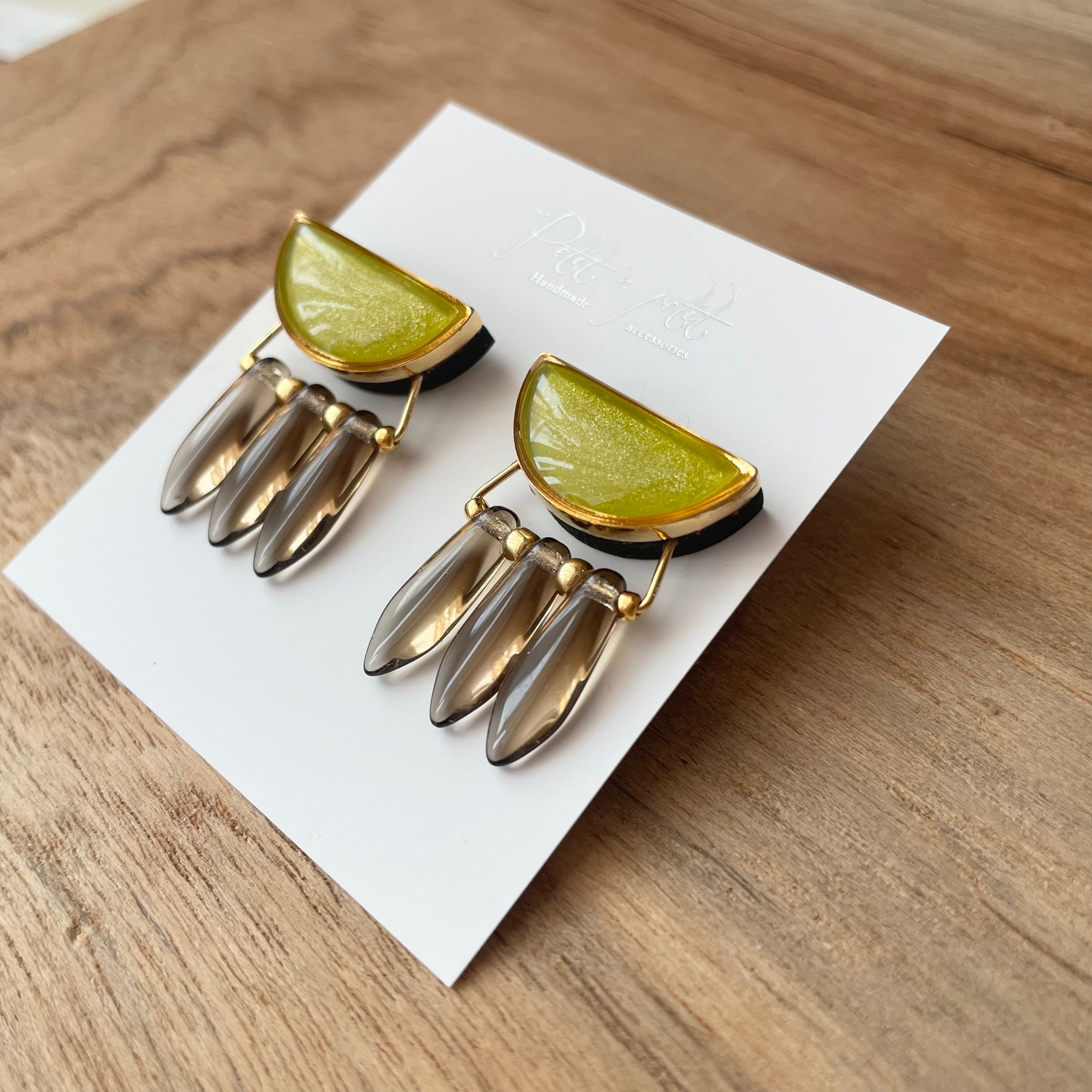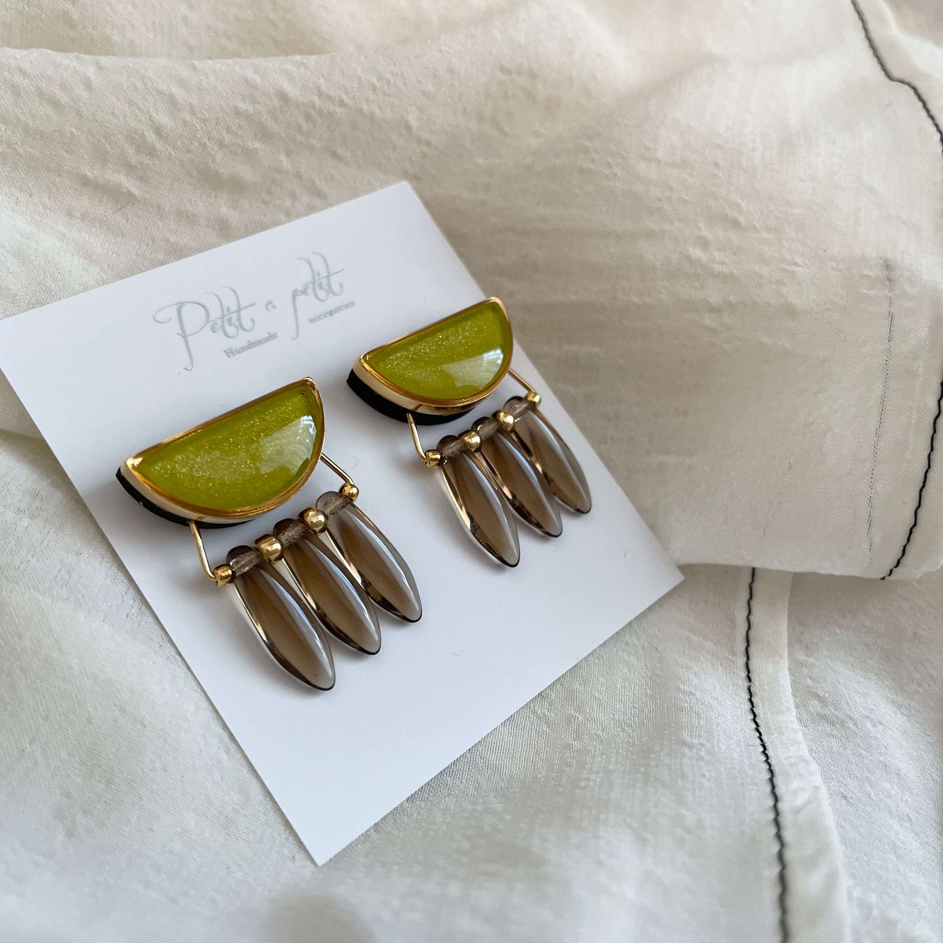 ライム×ブラウン ピアス/イヤリング